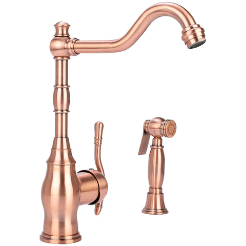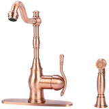 Bagneux Single-Handle Traditional Kitchen Faucet with metal spray for 1, 2, 3, or 4 Hole Installation in Antique Copper