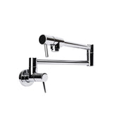 Italia Faucets is proud to launch its new "Italia" Pot Filler Faucet in Brushed Nickel.  Made in Italy exclusively for us comes this simple, yet elegant,  European modern styled filler.  This pot filler has one arm, and one valve making it very easy to use.  This filler has a reach of 17.72 inches making it ideal for reaching pots on the back burner of your stove top.  If you want to cook on your front burners, no problem.  Simply fill on the back burner and pull your pot to the front.