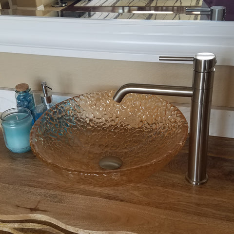 Elevate your kitchen with this attractive S-Series swivel spout vessel sink faucet. The single handle design allows for effortless flow control, while the high arc swivel spout offers complete sink access. This sink faucet features a rust-resistant brushed nickel finish that prevents dirt from sticking to its surface.