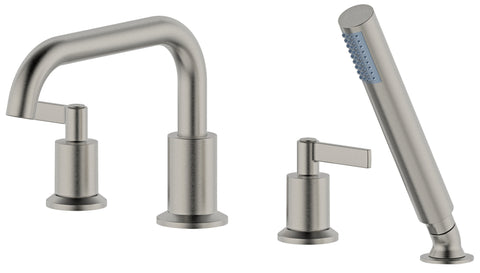 Italia Faucets is proud to introduce our new Fontaine by Italia Concorde Collection. Our new 4 hole roman tub filler faucet completes the collection with the same minimalist, modern tubular construction and styling. This Roman tub faucet filler spout rotates 360 degrees which is a special feature not found on most tub filler faucets. We include a hand shower wand with self-cleaning rubber tips, which makes a perfect complement to the modern tubular style. Everything you should need is included such as the rough-in valves and hose connections. Because the tubular construction is cost effective, this filler will not bust your budget although you get a great high end look as if it did. This Garden tub filler is available in Chrome, Brushed Nickel, Matte Black and Oil Rubbed Bronze.